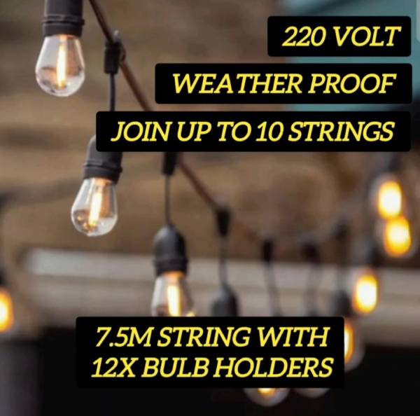 (220v) OUTDOOR STRING LIGHTS WITH FILAMENT LIGHT BULBS
