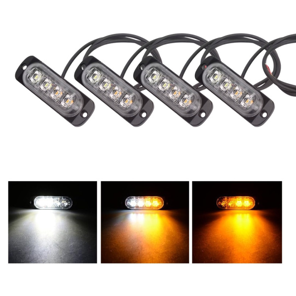4-units - 4-LED DUAL COLOUR SELF FLASHER (AMBER / WHITE)