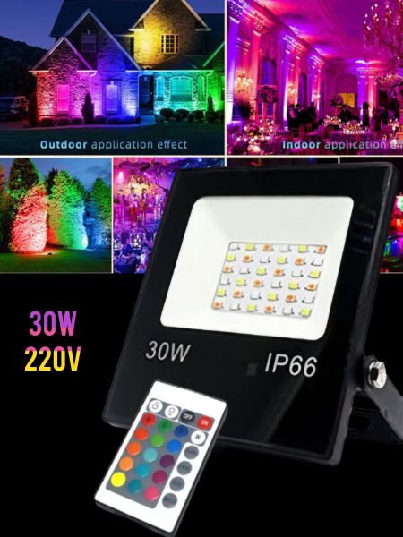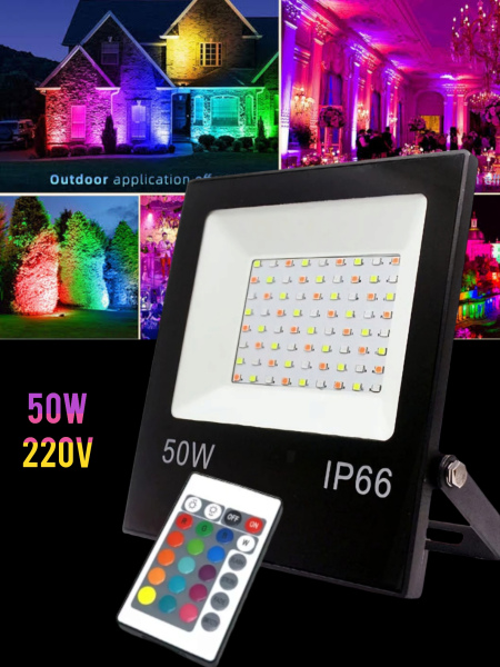 RGB Colour Changing Flood Lights with normal white light and multiple solid colour options & 4 Flashing / Fade modes