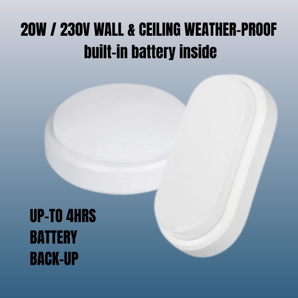 20w - 220v Battery Back-up Lamp, weatherproof (in & outdoor)